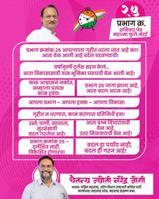 आपणास सांगू इच्छितो की मी प्रभाग क्र. २५ (ड) शनिवार पेठ महात्मा फुले मंडई मधून राष्ट्रवादी काँग्रेस पार्टी (अजित पवार) गटातून इच्छुक उमेदवार म्हणून आपणाशी या पत्रकाद्वारे संपर्क साधत आहे.